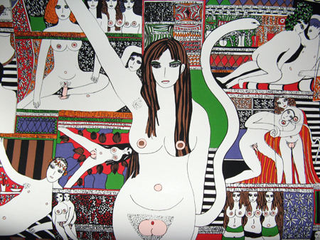 At 80 years old, Iannone is still a poster woman for the depths and possibilities of erotic art. While her naked, fornicating figures fell under the swift guillotine of 1960s censorship, today the octogenarian is running off of several straight years of gallery attention. Solo exhibition after retrospective, the art world seems eager to cozy up to the self-taught artist and her canvases teeming with female sexuality and spiritual love. No longer deemed “pornographic,” Iannone’s hailed as a “high priestess, matriarch, sex goddess.
