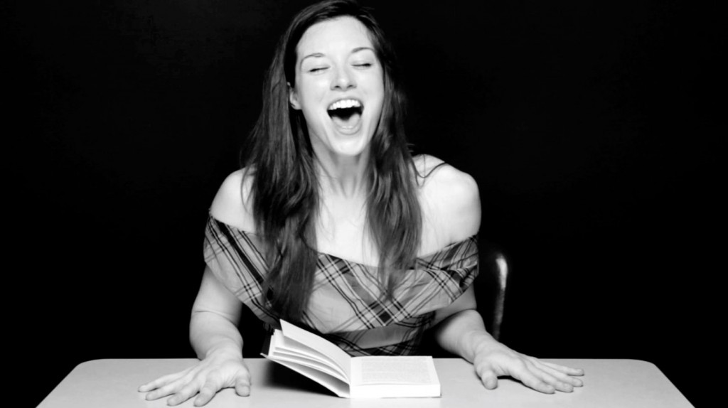 Clayton Cubitt’s “Hysterical Literature” series depicts women seated at a table reading a book of their choice. Each woman introduces herself, identifies the text she has chosen, and begins to read. As she does so, someone unseen under the table stimulates her with a vibrator.